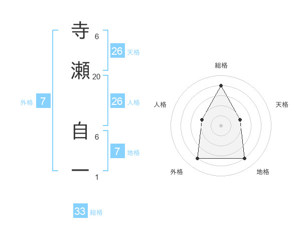 寺瀬 自一さんの総格は33画の4点!