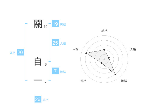 關 自一さんの総格は26画の2点!