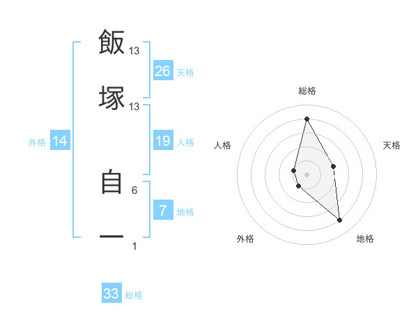 飯塚 自一さんの総格は33画の4点!
