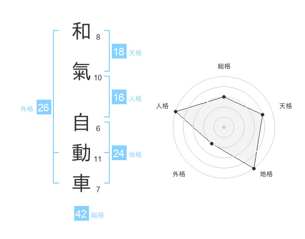 和氣 自動車さんを姓名の画数から五運を鑑定