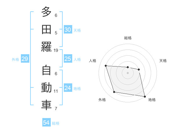多田羅 自動車さんを姓名の画数から五運を鑑定