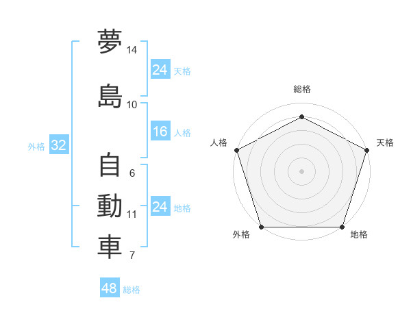 夢島 自動車さんを姓名の画数から五運を鑑定