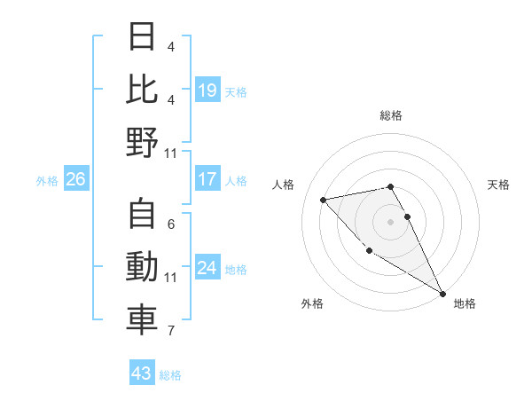 日比野 自動車さんを姓名の画数から五運を鑑定