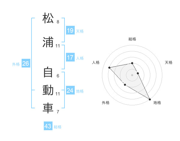 松浦 自動車さんを姓名の画数から五運を鑑定