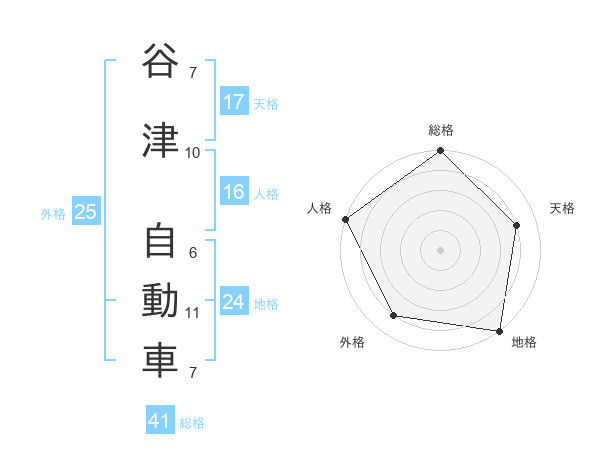 谷津 自動車さんの総格は41画の5点!
