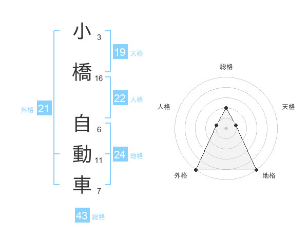 小橋 自動車さんを姓名の画数から五運を鑑定