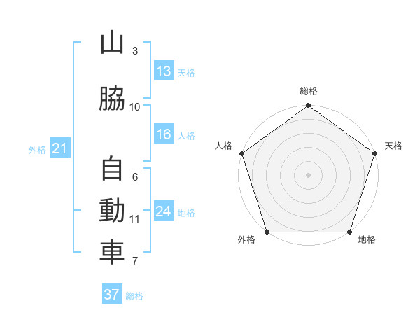 山脇 自動車さんを姓名の画数から五運を鑑定