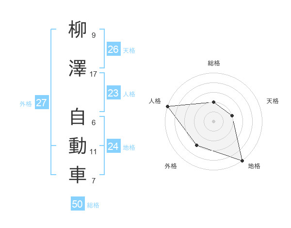 柳澤 自動車さんを姓名の画数から五運を鑑定