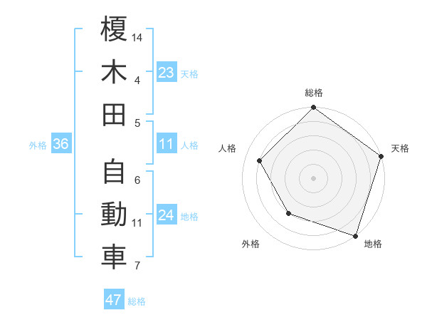 榎木田 自動車さんを姓名の画数から五運を鑑定