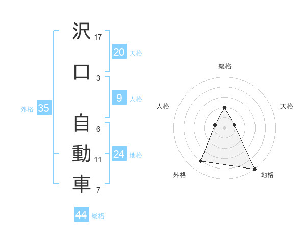 沢口 自動車さんの総格は44画の2点!