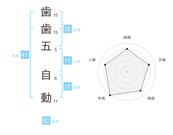 歯歯五 自動さんを姓名の画数から五運を鑑定