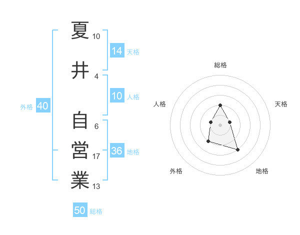 夏井 自営業さんを姓名の画数から五運を鑑定