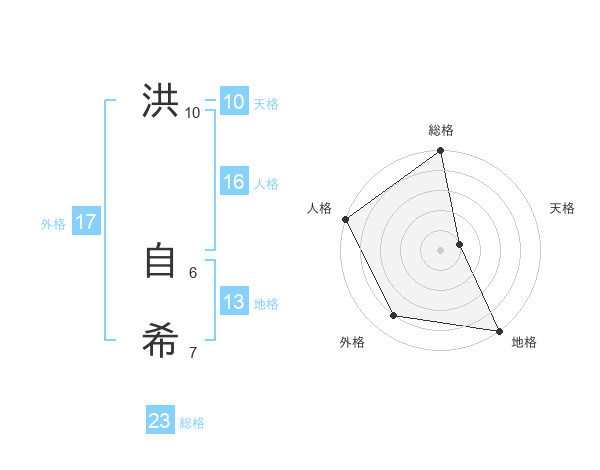 洪 自希さんの外格は17画の4点!