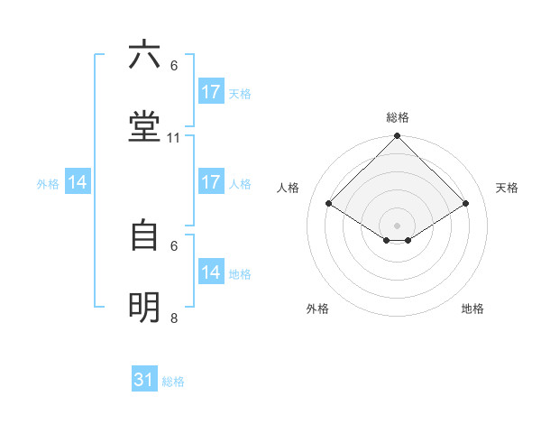 六堂 自明さんの総格は31画の5点!