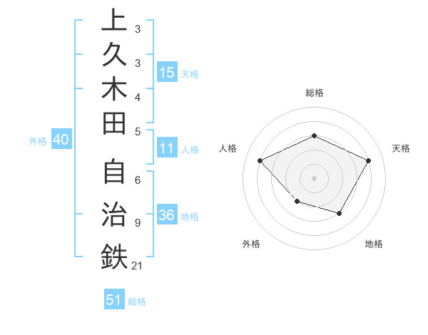 上久木田 自治鉄さんを姓名の画数から五運を鑑定
