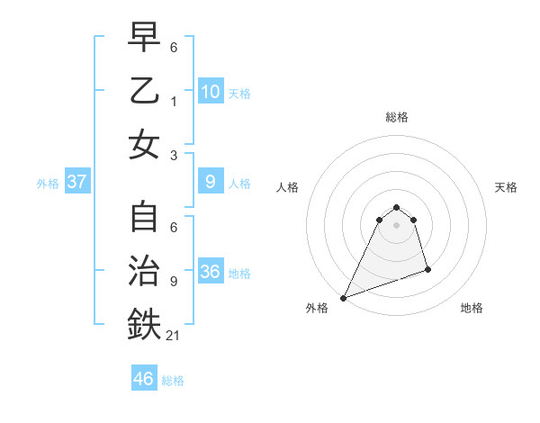 早乙女 自治鉄さんを姓名の画数から五運を鑑定