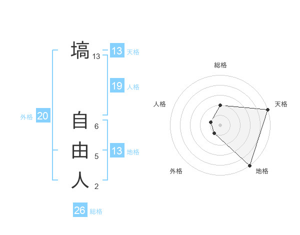 塙 自由人さんの地格は13画の5点!