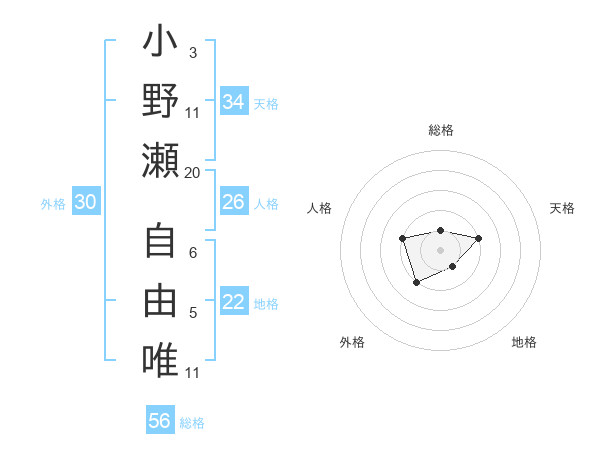 小野瀬 自由唯さんを姓名の画数から五運を鑑定
