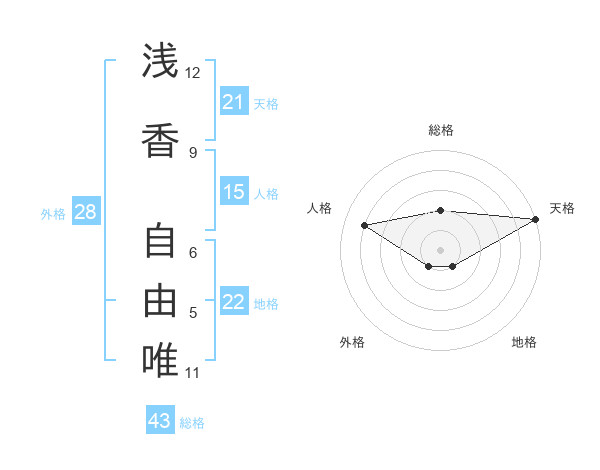 浅香 自由唯さんを姓名の画数から五運を鑑定