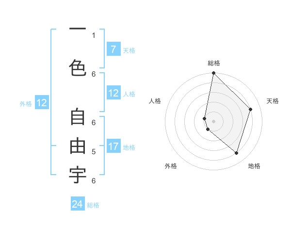 一色 自由宇さんを姓名の画数から五運を鑑定
