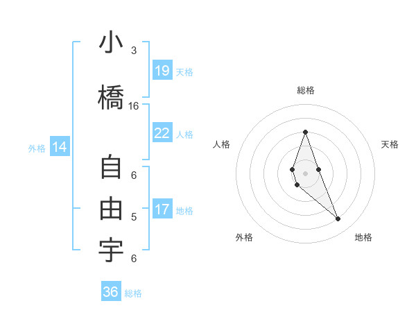 小橋 自由宇さんを姓名の画数から五運を鑑定