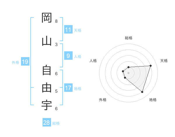 岡山 自由宇さんを姓名の画数から五運を鑑定
