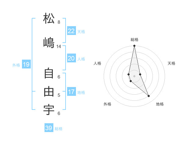 松嶋 自由宇さんを姓名の画数から五運を鑑定