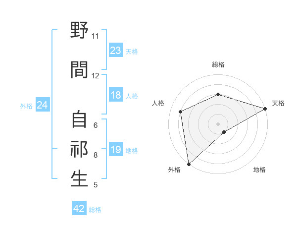 野間 自祁生さんを姓名の画数から五運を鑑定