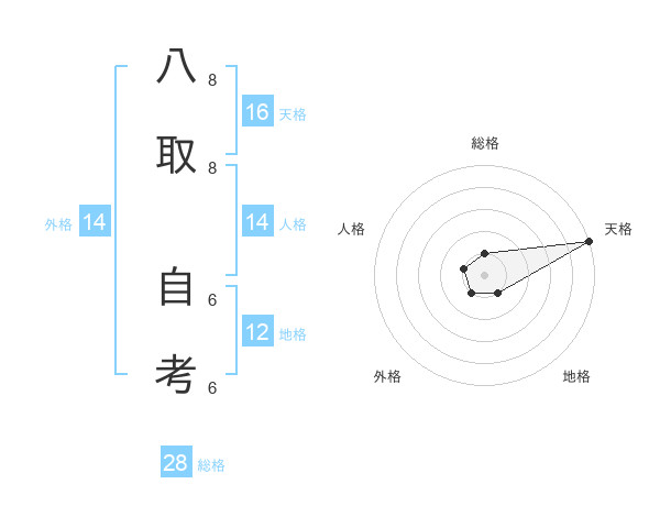 八取 自考さんの総格は28画の1点!