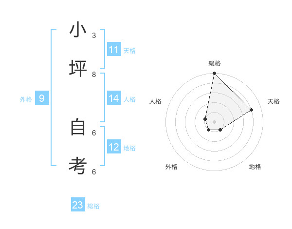 小坪 自考さんの総格は23画の5点!