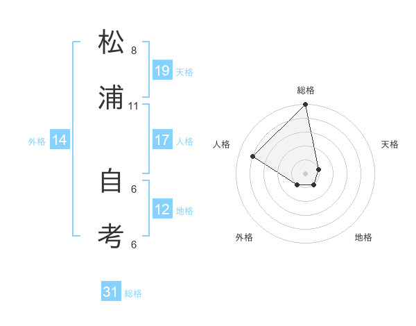松浦 自考さんの総格は31画の5点