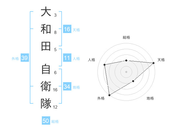 大和田 自衛隊さんの総格は50画の2点!