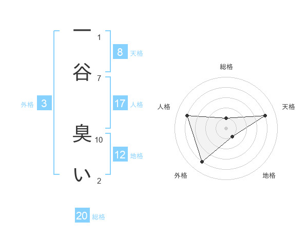 一谷 臭いさんの総格は20画の1点!