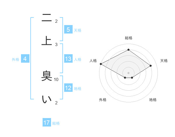 二上 臭いさんの総格は17画の4点!