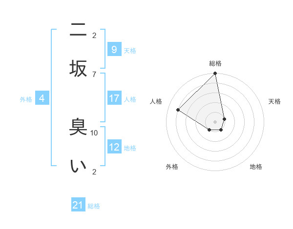 二坂 臭いさんを姓名の画数から五運を鑑定