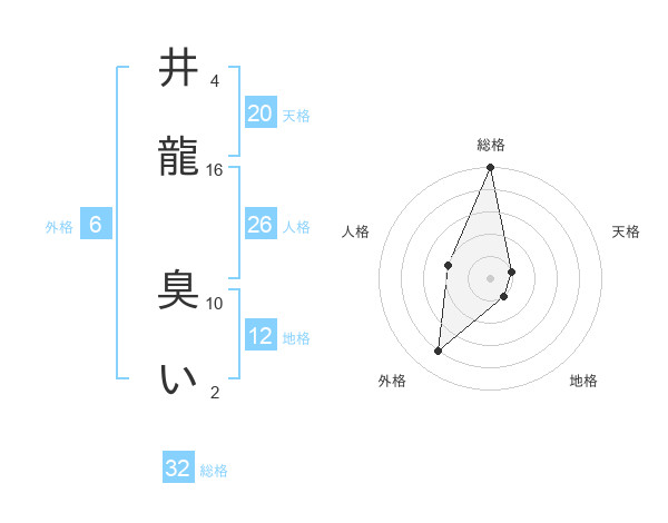 井龍 臭いさんの総格は32画の5点!