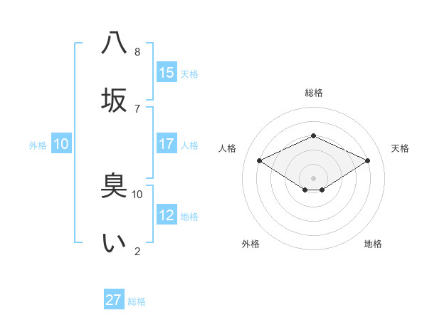 八坂 臭いさんを姓名の画数から五運を鑑定
