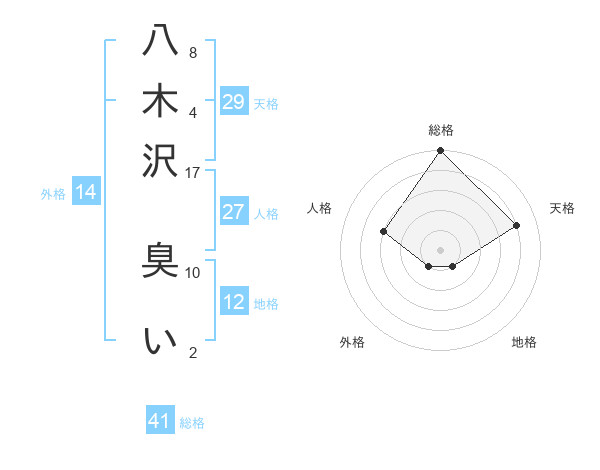 八木沢 臭いさんの総格は41画の5点!