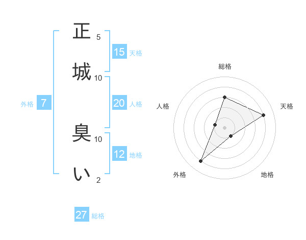 正城 臭いさんの総格は27画の3点!