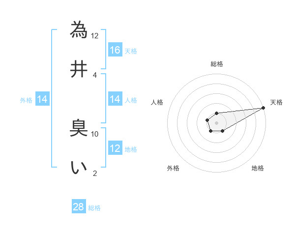 為井 臭いさんの天格は16画の5点!