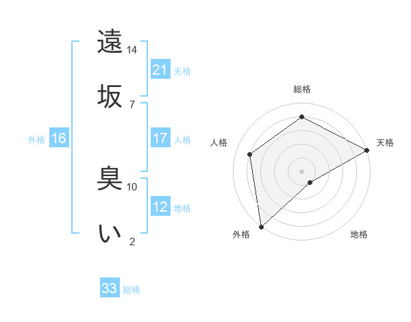 遠坂 臭いさんを姓名の画数から五運を鑑定