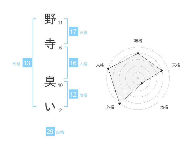 野寺 臭いさんを姓名の画数から五運を鑑定