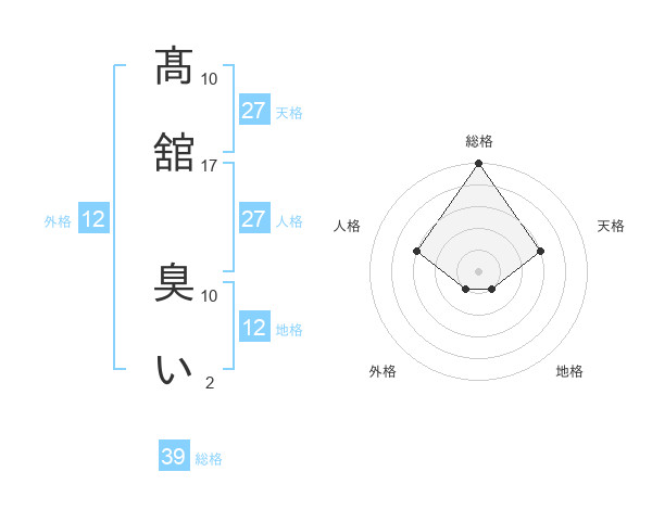 髙舘 臭いさんを姓名の画数から五運を鑑定