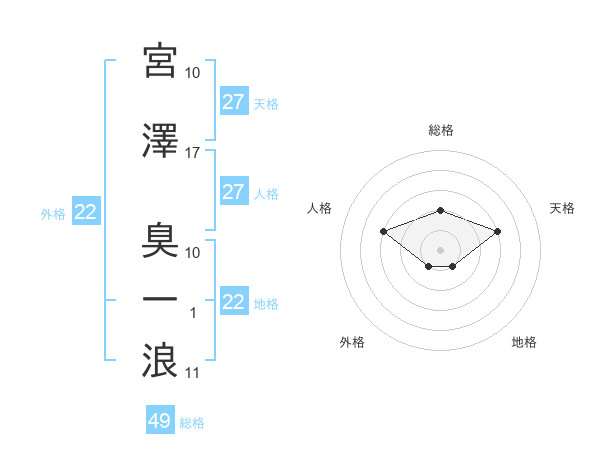 宮澤 臭一浪さんを姓名の画数から五運を鑑定