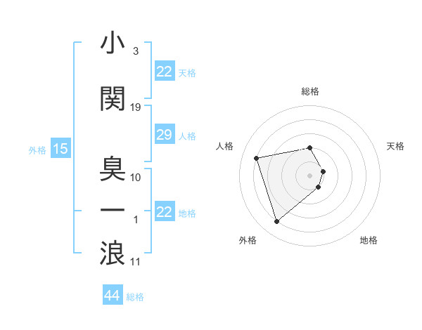 小関 臭一浪さんを姓名の画数から五運を鑑定