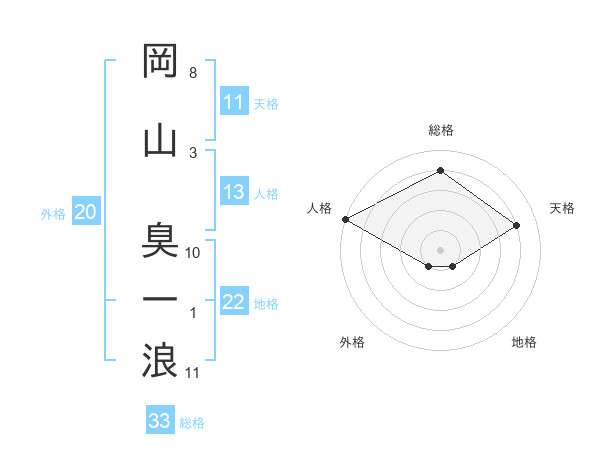 岡山 臭一浪さんを姓名の画数から五運を鑑定