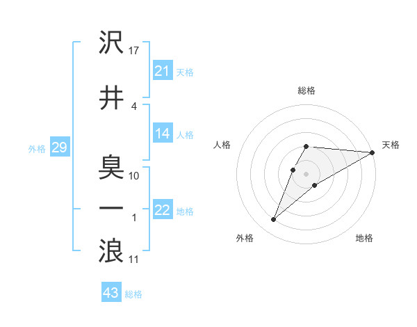 沢井 臭一浪さんを姓名の画数から五運を鑑定