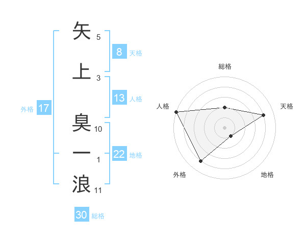 矢上 臭一浪さんの天格は8画の4点!