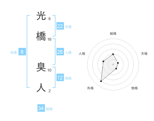 光橋 臭人さんを姓名の画数から五運を鑑定