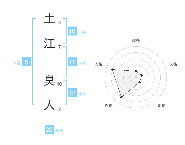 土江 臭人さんの総格は22画の1点!